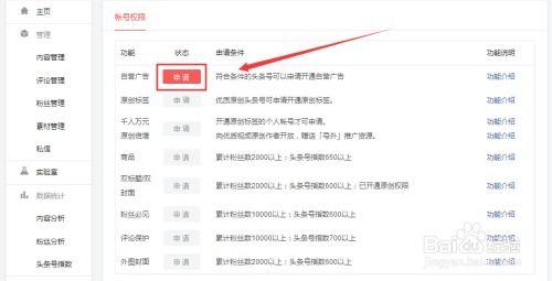 进入后台后,你会看到一系列功能选项。找到“广告”这一栏,点击进入。在这里,你会看到“广告账户申请”的选项,点击它。